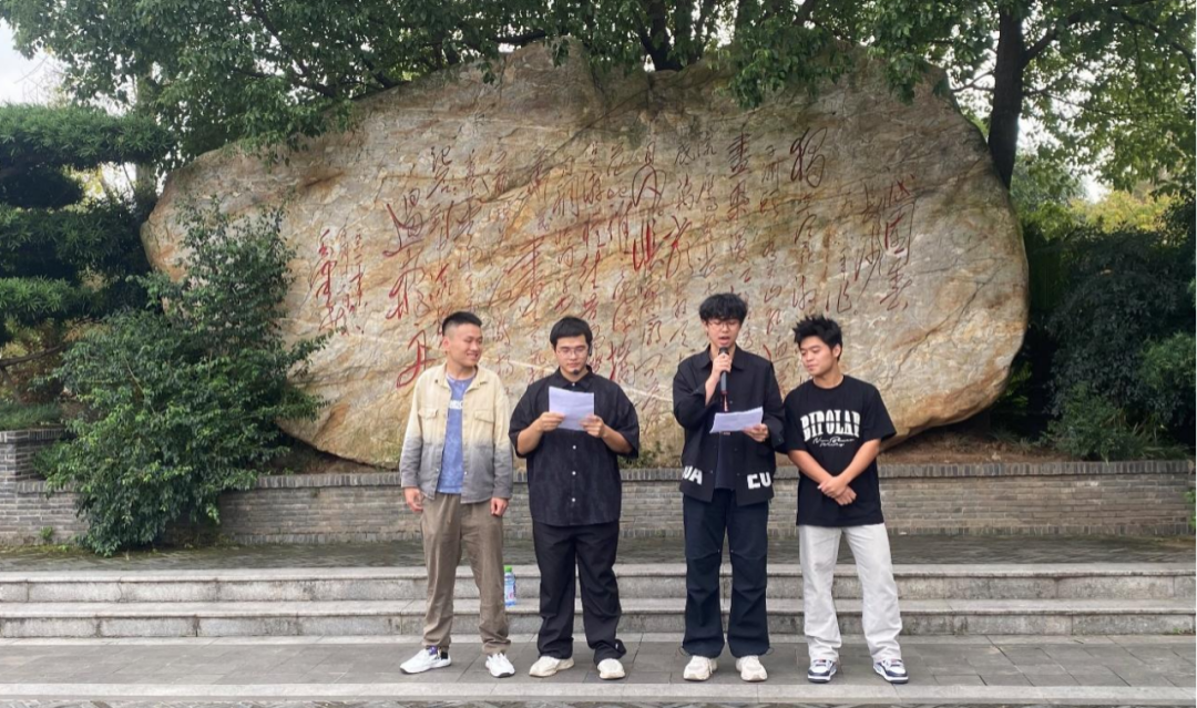 在《沁园春·长沙》诗词碑前,学生们深情朗诵了《沁园春·雪》和《沁园春·长沙》的中英版本,声情并茂,青春洋溢,充分展示了三一职院学子的英语水平与文化素养。游客们纷纷驻足聆听,对同学们的精彩表现赞不绝口,这一幕也成为了橘子洲上一道亮丽的风景线。