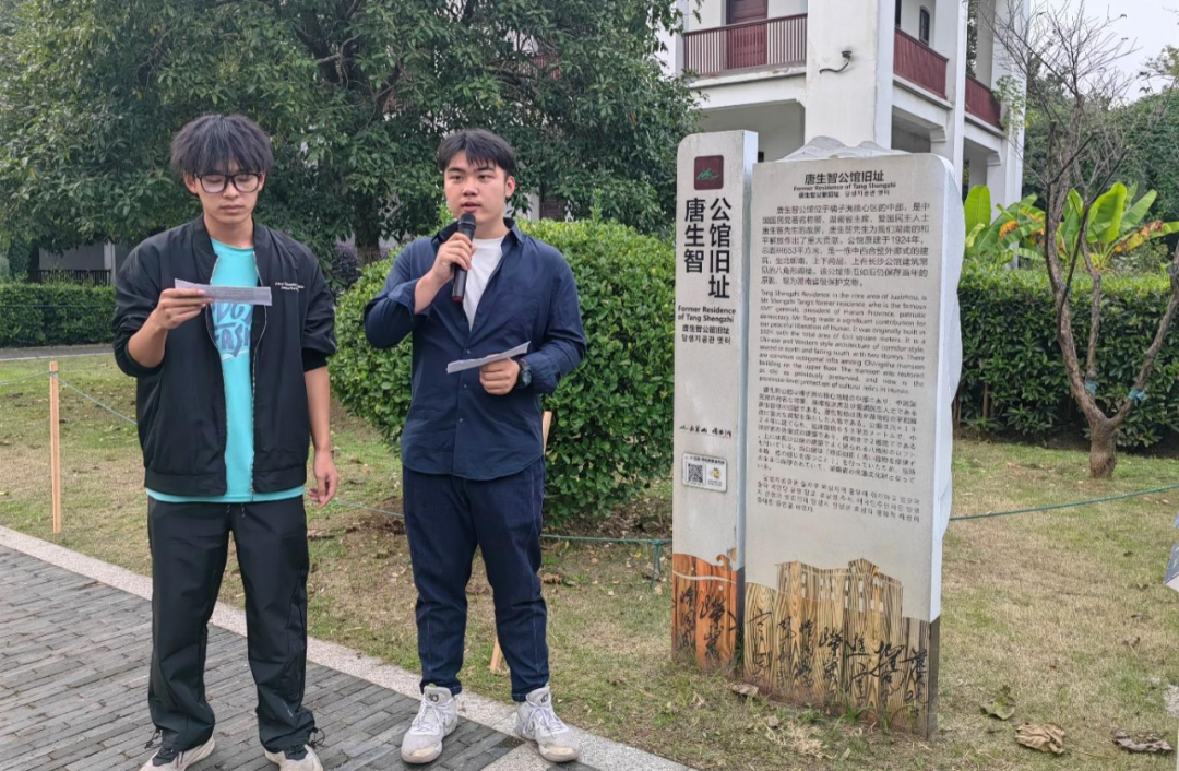 与传统课堂教学截然不同,此次户外课堂采用了全新的教学模式。学生在课前进行了充分准备,深入了解橘洲各景点的历史背景,并精心准备中英双语的解说词。到达景点后,学生们化身为“双语导游”,以流利的英语和生动的中文为同学和游客介绍景点,这一实践经历不仅提升了学生的英语口语表达能力,还显著增强了他们的自信心。