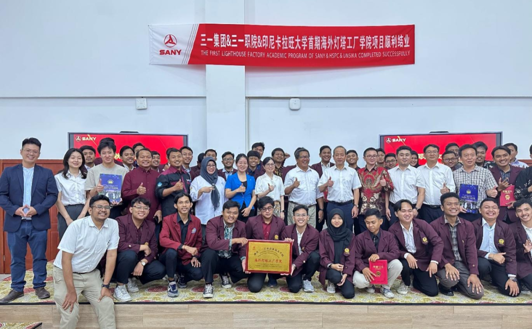 2024年10月16日,由三一职院“海外灯塔工厂学院”首期“海外三一班”培训在三一印尼全球培训中心圆满结业。此次培训班结业,是“海外灯塔工厂学院”项目的阶段性重要成果,也标志着三一职院在国际职业教育合作领域迈出了坚实步伐。三一印尼MARKUR公司董事长魏元元、三一印尼PERKASA公司副总经理邓海君、三一重工印尼国区人力资源部长李颖、卡拉旺大学工程机械学院副院长Rizal Hanifi、三一职院副校长邓秋香,工程机械学院院长胡军林等校、企相关负责人出席结业典礼。三一印尼PERKASA公司副总经理邓海君表示,三一的全球化进程不断加快,在印尼的工程机械领域处于领先地位。灯塔学院项目为三一印尼培育了一批急需的本土人才,期望这种模式能够持续发展,为三一在印尼的蓬勃发展增添源源不断的动力。结业典礼上,卡拉旺大学工程机械学院副院长Rizal Hanifi表示,三一职院为印尼教师提供了优质的教学资源和实习、就业机会,显著提升了学生的专业技能,拓宽了他们的国际视野。三一职院副校长邓秋香表示,此次培训项目的成功实施,不仅为三一在印尼的发展提供了人力资源支持,也为中外校校企人才共育提供了成功案例。未来,三一职院将继续深化与印尼卡拉旺大学等海外院校的国际教学合作,共同探索教育创新与人才培养的新路径,为“一带一路”建设贡献更多中国智慧和力量。据悉,“海外灯塔工厂学院”合作项目去年12月签署合作协议,今年6月完成师资来华培训,并于7月正式启动“海外三一班”培训。34名印尼学生经过严格选拔,在三一印尼全球培训中心完成为期3个月的系统培训,培训内容涵盖了挖掘机操作、电气、液压、及调试维修等多个关键模块。这一项目的成功实施,不仅为三一职院自身和其他高职院校提供了国际化发展的示范案例,也为中国“职教出海”方案多元化贡献了力量。为中资企业的海外业务拓展提供人力资源支持。未来,三一职院“海外灯塔工厂学院”项目将继续作为深化国际校企合作与交流的重要平台,弘扬中华优秀文化和先进工程机械技术,催化更多类似“三一班”的优质教育项目落地生根,为推动“一带一路”倡议不断走深走实注入强劲动力,培养更多具有国际视野、精湛技能和创新能力的复合型人才,共同书写职业教育国际合作与交流的新篇章。