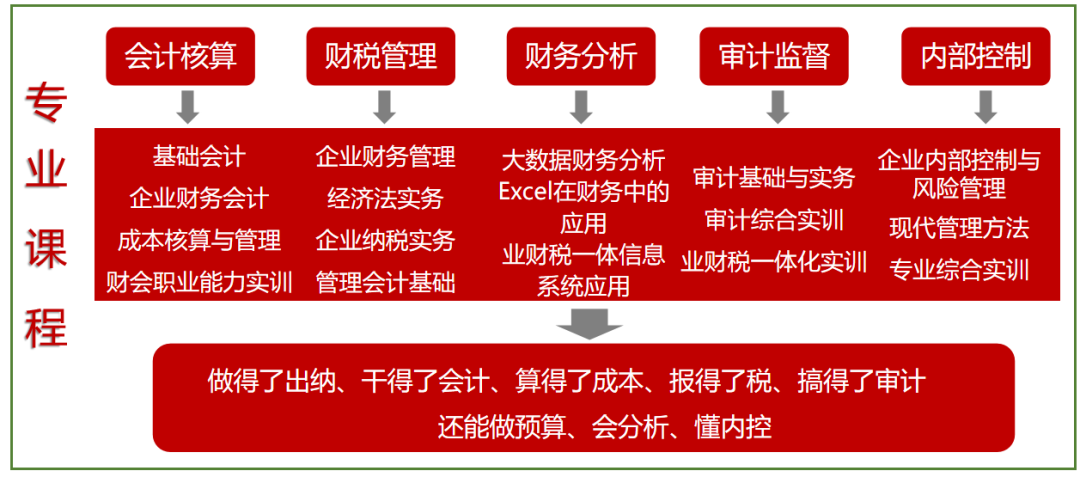 据《2024-2029年中国审计服务行业市场深度调研及投资策略预测报告》显示:预计到2027年,中国审计服务市场的规模有望进一步扩大至2200亿元左右,复合年增长率(CAGR)达到9%。我国内部审计人才缺口会达到900万人左右,但目前我国内部审计人员只有35万人左右,取得相应资格的内部审计师才不足3万人。大数据与审计专业前景广阔:(1)复合型技术应用人才缺口巨大。大数据审计人才缺口达 50 万人,企业急需既懂传统审计理论,又能熟练运用 Python、SQL 等工具的复合型人才。(2)数据合规与安全审计人才成刚需。全球数据合规监管日趋严格,企业需要专业人才掌握隐私计算、区块链溯源等技术,既能排查财务数据风险,又能应对业务全链条的安全审计问题。(3)新兴领域专项审计人才需求激增。双碳目标推动下,ESG(环境、社会、治理)审计纳入企业评价体系,急需能融合财务、业务与碳足迹数据的审计人才。本专业培养适应现代财务、审计发展和地方经济发展需要,掌握会计核算、成本管理、税务管理、财务预算、财务数据分析、审计鉴证与管理咨询等知识与技能的高素质技术技能人才。